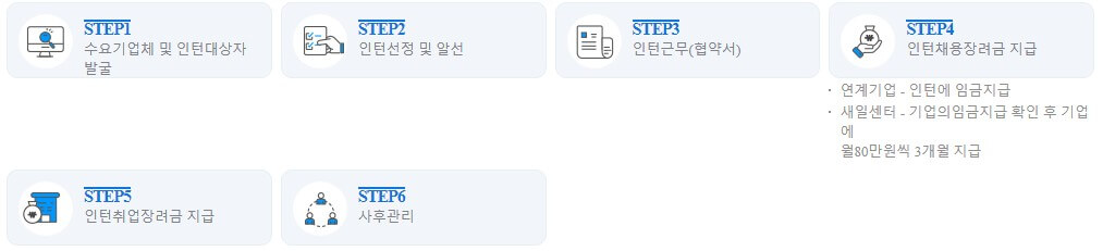 인턴 종료 후 상용직 또는 정규직 전환일로부터 6개월 이상 고용 유지 시 새일고용장려금 지급