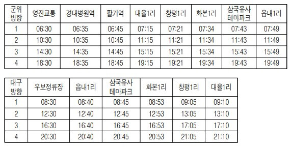 북구 동호동(영진교통) ~ 군위버스터미널